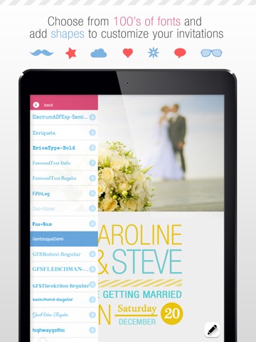 The app is good but should add a "save project" function so the user can work on the invitation at different moments.