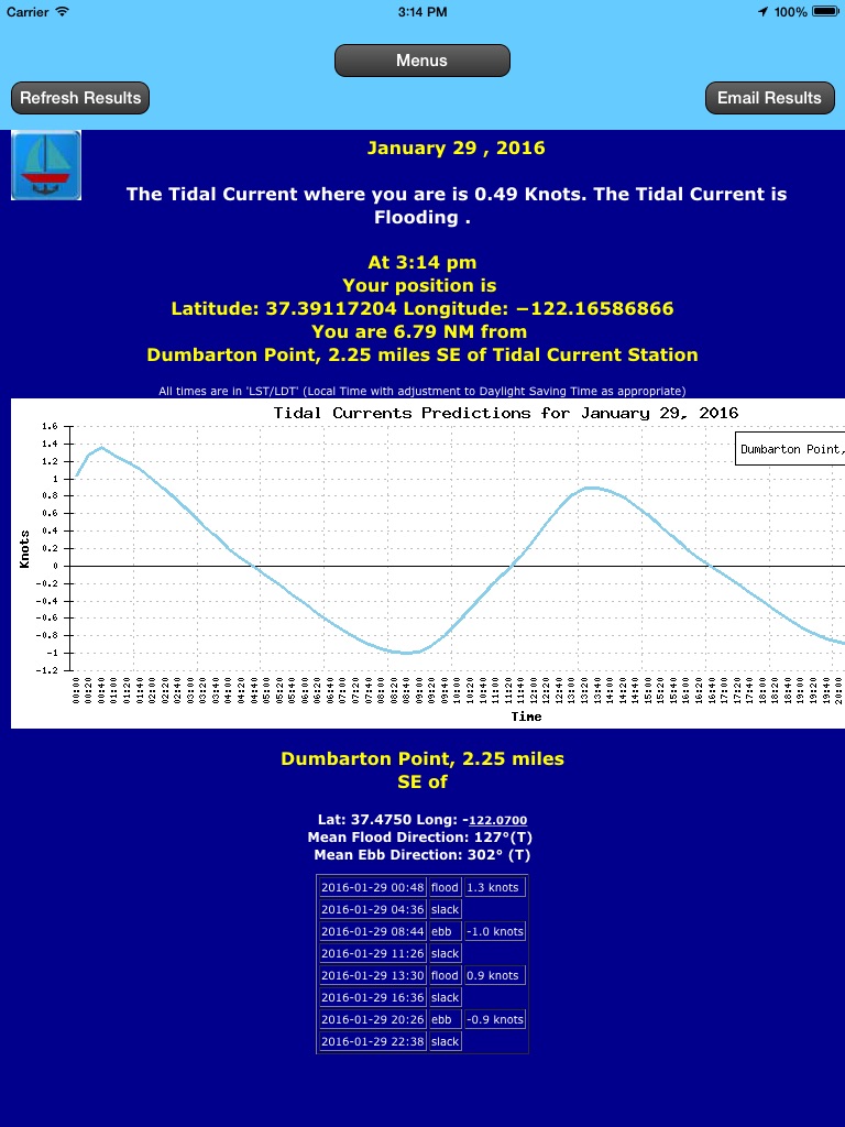 The tidal currents are plotted and displayed for you to verify the results. This helps you to fine-tune your next boating trip.