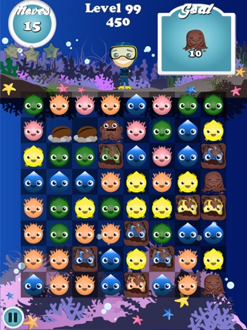 * Ocean World is serene and calm where you can see Gummy Trees, but pesky Mud Monsters splatter Gummies in Mud.