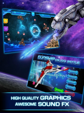 Come thunder your way as you raid and lay your mark across the universe in this new awesome game! GUNSHIP GALAXY BATTLE is the best new shooting game. Steal the thunder from your friends while raiding across the universe. Get into your thundering fighter and shoot the greatest barrage, toughest spaceships, insane boss as you come conquering Star Fleets and Space bases across the galaxy.