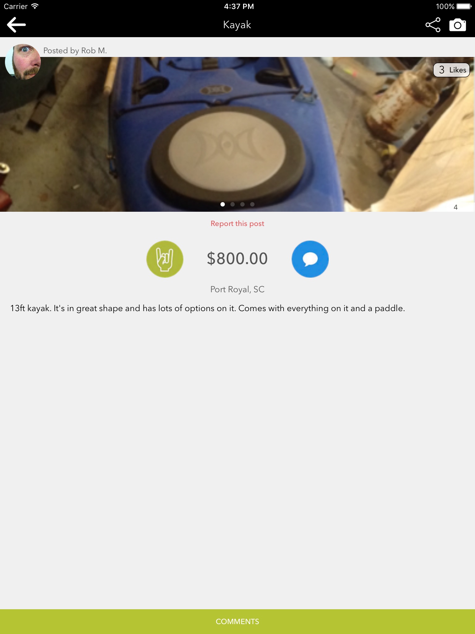With the Guy Stuff app, you can discover killer guy stuff for sale by neighbors near you or from