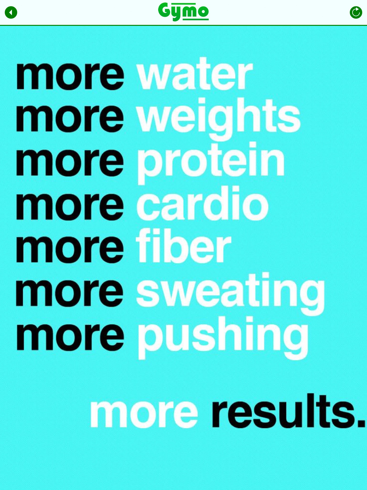 Whether it is early in the morning or the end of a hard working day, Gymo will give you that push you need to start your day motivated or hit the gym when having second thoughts.