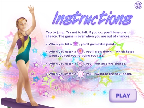 McKenna, the Girl of the Year® 2012, loves gymnastics and dreams of being on the competitive team. In this game, you’ll help McKenna practice her gymnastics skills so that shell be ready to shine at tryouts. Tap the screen to jump over obstacles while collecting stars and catching bonus items. Try not to fall. If you do, you’ll lose one chance. The game is over when you are out of chances.