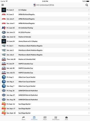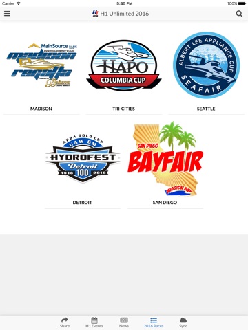Official App of the H1 Unlimited Hydroplane Series - H1 Unlimited races 3000 horsepower, 200+ MPH boats on lakes and rivers in the Unites States with races in Madison, IN; Tri-Cities, WA; Seattle, WA; Detroit, MI and San Diego, CA.