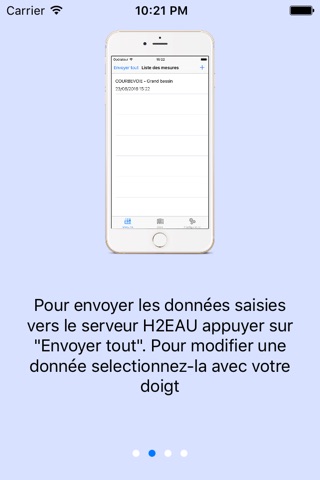 Lapplication H2EAU ASSISTANCE permet à des techniciens ou des clients dH2EAU ASSISTANCE de pouvoir saisir les relevés techniques de leau. Ces relevés sont ensuite disponibles sur la plateforme dH2EAU ASSISTANCE afin de piloter et contrôler la qualité de leau des bassins.