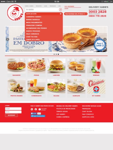 Toda a experiência de delivery do Habibs é ridícula. O site desktop é uma bosta, o app (que na verdade é um site embarcado) é uma bosta maior ainda. Tentei por telefone e dá ocupado. Simplesmente patético.