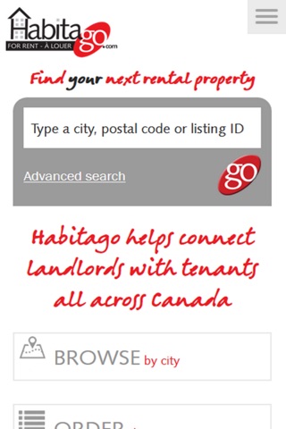 Habitago is a website that connects landlords and tenants all across Canada. It enables landlords to post their ads to rent their apartments, condos, houses or cottages. Landlords and property owners post pictures of their property and provide all relevant information to potential tenants.