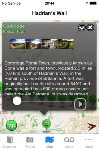 This app brings together everything a visitor may need when visiting Hadrian’s Wall Country. The most popular roman sites are included, along with countless roman remains, mile castles and everything in between; from train stations, to pubs, bars, restaurants and accommodation. The app uses all of the pioneering capability of the iPhone, iPad or iPod Touch to give the user the easiest and most informative experience possible.