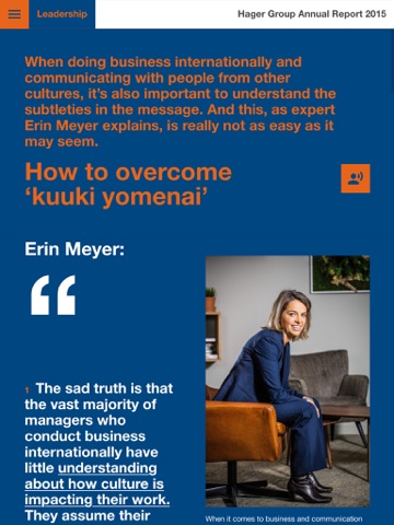 Hager Group Annual Report 2015 presents all of this and much more in a brand-new design, as the group completely overhauled its corporate and brand identity at the start of 2016. And, as always, Hager Group Annual Report is a magazine with a lively, journalistic tone – not merely a list of facts and figures. It’s more about taking stock and looking to the future than looking back on past success.