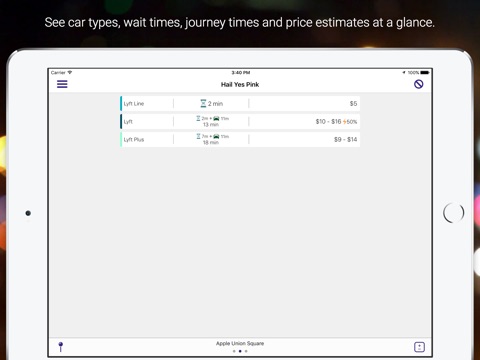 From Cromulent Labs, the makers of the popular Launcher for iOS, comes Hail Yes Pink with clear and simple time and price estimates for every car type so that you can make an informed decision.