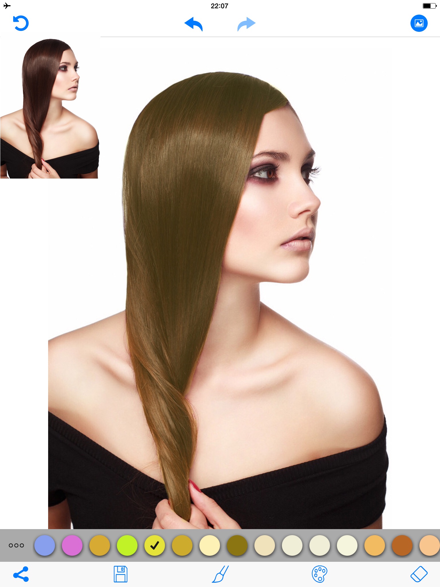 All you have to do is select a photo, outline hair and then apply different colors. Once your hair makeover is complete, you can save it or share on Instagram, Facebook, Twitter, etc.