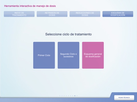 Aplicación de ayuda para el tratamiento con eribulina, donde podrá encontrar toda la información que necesita al respecto de su preparación y administración, calculadora de dosis, esquema de dosificación y un sistema interactivo para la ayuda en la dosificación en los diferentes ciclos de tratamiento.