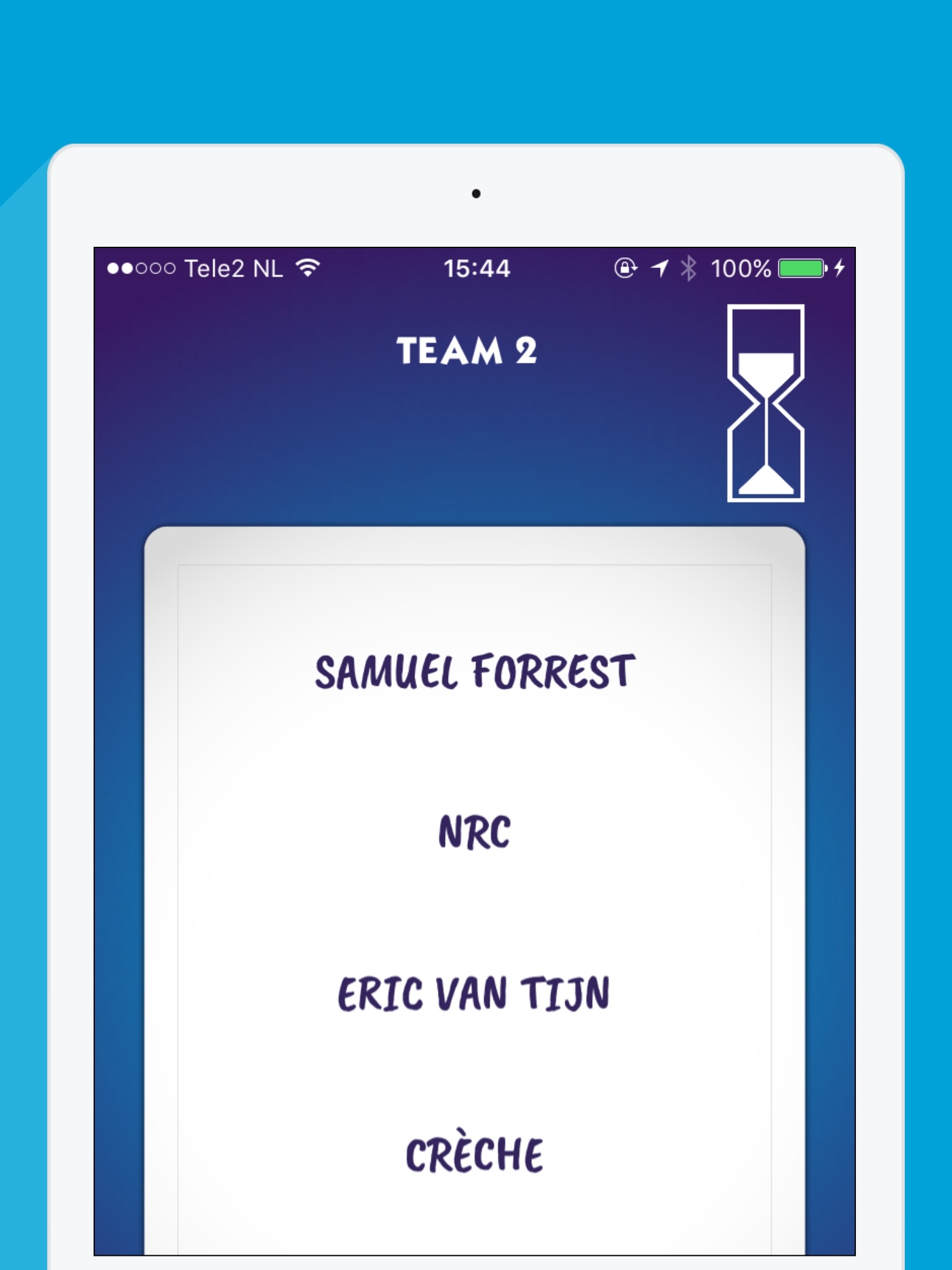Half a Minute is a fun game that you can play with an infinite amount of players (at least 4). Each member of every team describes 4, 5 or 6 words (depending on the difficulty) within half a minute. The team that has the most knowledge and best tactics wins the game. guaranteed for a fun and hilarious evening!