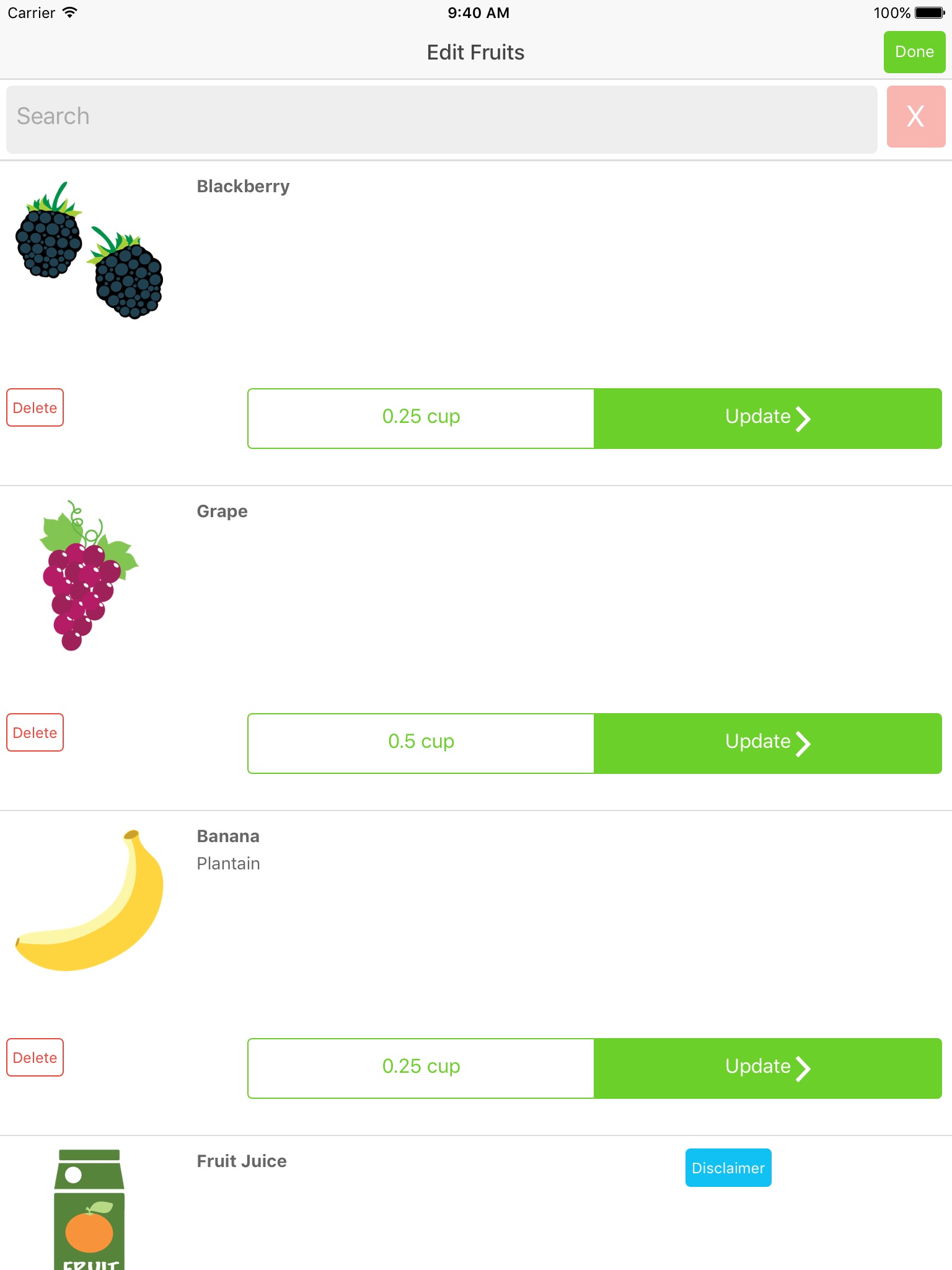 Finally, a fun way to motivate yourself to eat more fruits and vegetables! Based on USDA recommendations, the Half My Plate app is a customizable tracker that helps you reach your goals for a healthy diet by inspiring you to make half your plate fruits and vegetables. Includes personalized fruit and vegetable recommended amounts and a searchable database of recipes that feature fruits and vegetables.