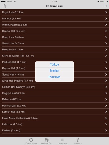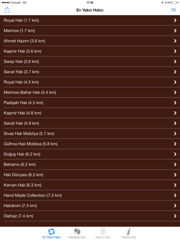 Türkiye içindeki halıcıların adres ve telefon bilgileriyle uygulamanın içinde.