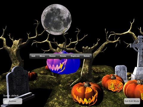 3D Halloween scenes!!! Free!!! Create your own 3D Halloween customized scene. You can also create 3D pumpkin cutouts by simply taking a picture, pasting and image or using a photo in your photo library.