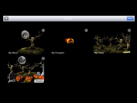 •Build your Halloween scene by adding pumpkins, head stones, trees or a moon.