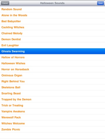 -20 Halloween sounds, including: vampires, monsters, witches, zombies, ghosts, werewolves, halloween music and more.