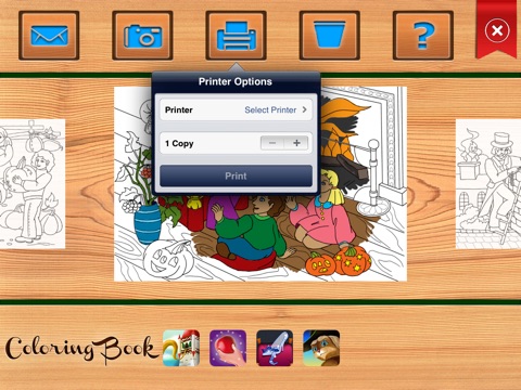 Lets your children dive into fascinating world of "Halloween" festival! They can train imagination preparing to festival and color personages on their own. There are 25 pictures which can be colored, sent by email, printed, saved to album or uploaded to Facebook what gives children almost unlimited opportunities.