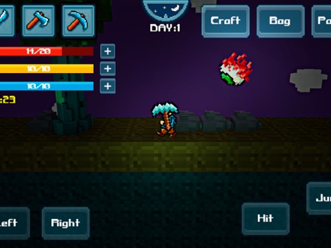 Let’s start our survival adventure! Your goal here is to collect resources, craft tools, weapons, and shelter, and survive as long as possible.