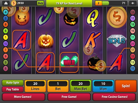 Experience Halloween Slot Machine - an exciting multi-line slot machine with realistic game play! Amazing graphics make it seem like you are playing a real Vegas Slot Machine with your favorite Halloween Themed Graphics!!!
