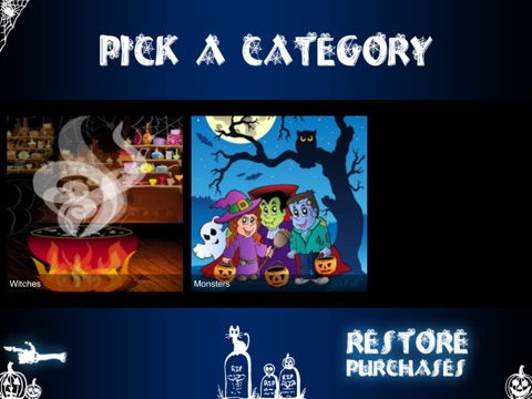 You can choose from two sets of pictures in categories Witches and Monsters. Each set contains five pictures with three difficulty levels.