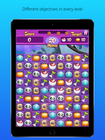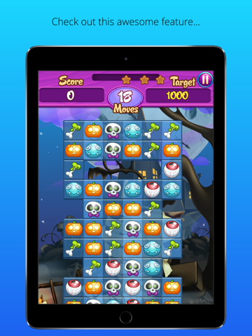 HALLOWEEN MATCHING: match the various scary monsters in sets of 3 or more to score points and get objectives to advance to the next spooky level