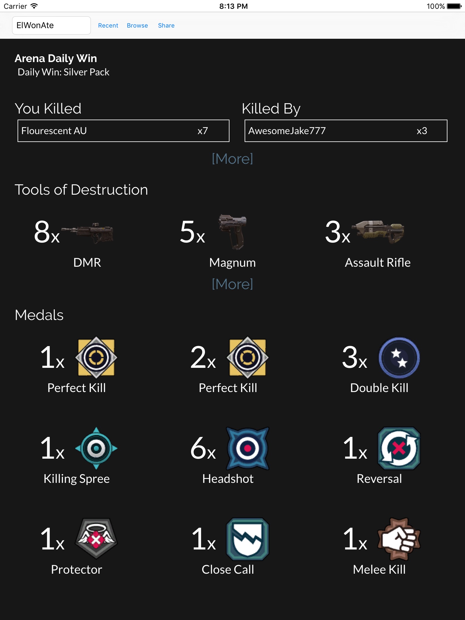 You can browse your previous games, look at other player details within each game, look up other players, and share individual games with a unique URL to the Halo Carnage website.