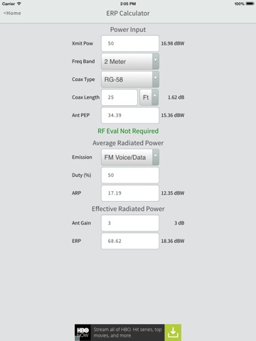 A utility to help ham radio operators determine the effective radiated power of their station, and to perform various other calculations.