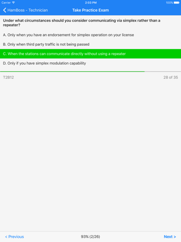 D) Take a practice exam as many times as you like until you begin having a consistent passing score. Ham Boss will present you with 35 questions from the 420 question question pool.