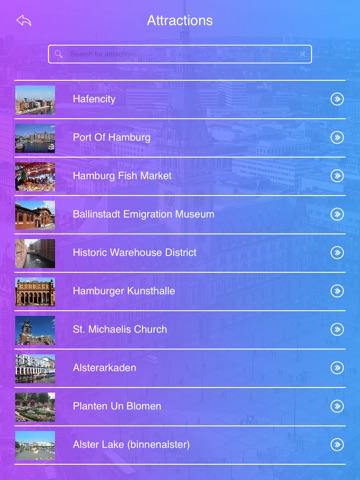 Discover whats on and places to visit in Hamburg with our new cool app. Your guide to top attractions, shopping malls / locations, finding hotels, directions to hotels & Bars, Restaurants. An all-in-one app for all the local attractions.