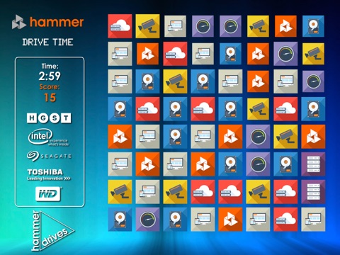 Hammer Drive Time is a fun icon matching game. Simply tap any two adjacent icons to swap them over, and build lines of three or more icons for points. Get as high a score as you can in 3 minutes.