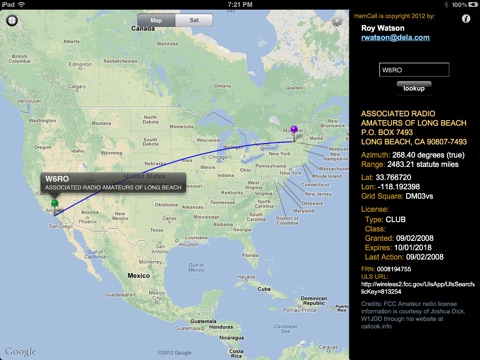 HamRadioCall is an application for Amateur Radio Operators. HamRadioCall maps and displays location and license information for both the user and another ham based on that hams callsign.