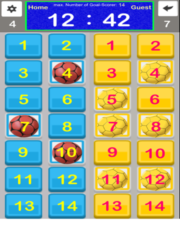 Application for determining a score when played in the "goals multiplied by goal scorer" mode. For example: handball youth. The shirt numbers of the players are arbitrary and will be taken over to all lists. A wrong input can be cancelled.