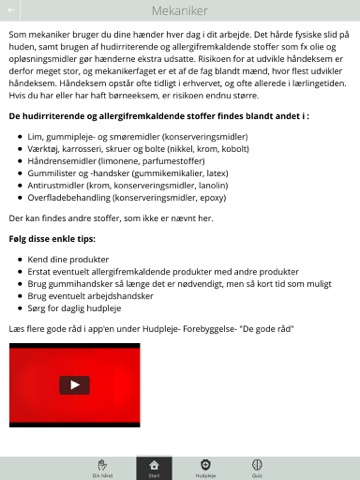 App’en indeholder generel information for alle og særlig målrettet information om, hvilke stoffer der kan være et problem for dig der er frisør, kosmetiker, mekaniker, fødevaremedarbejder, SOSU-hjælper/- assistent eller bygningsarbejder.