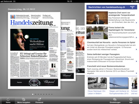 Die Handelszeitung bietet Ihnen Wirtschaft, wann und wo Sie möchten – als PDF-Ausgabe der Handelszeitung und in Form von aktuellen Artikeln von www.handelszeitung.ch – auf iPad und iPhone.