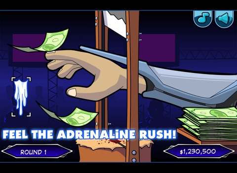 Stick your hand through a guillotine and grab the cash quickly -- avoiding the blade cutting off your hand. Collect the cash by bringing it back to your side and stackin up.