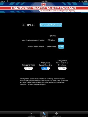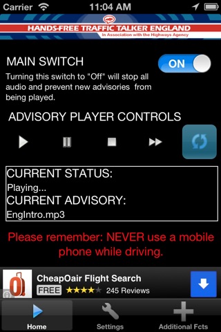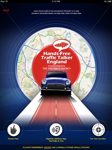 Start the application before starting your car. You will start to hear active Highways Agency advisories that are within your range. Now put down the phone and focus on driving. There is nothing you need to touch on the phone, and nothing you need to read on the phone. This is completely hands-free.