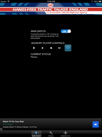 Provided to you in association with the Highways Agency, you can listen to your phone play travel advisories near you. As you travel, it will automatically keep you updated with advisories that are nearby. You don’t need to register, you don’t need to sign up anywhere for anything. The app uses the phone’s built-in GPS to stream nearby alerts.
