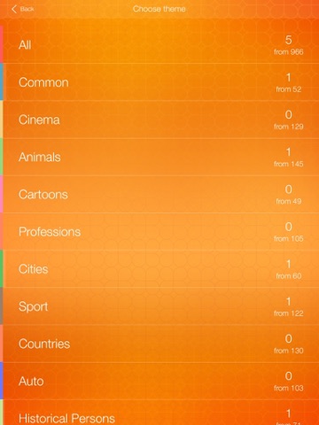 - Topics for every taste: cities, countries, cinema, animals, professions, auto and many others