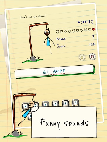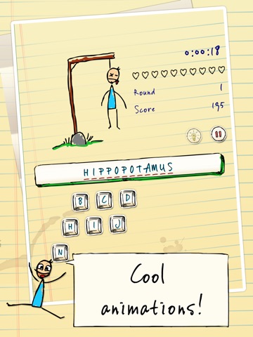 Forget paper and pen and play the classic game Hangman Hero on your smartphone or tablet. Guess all 150 missing words in this free version and get even more through in-app purchases to save the stick man again and again! You can also play in offline multiplayer mode against friends and try to guess their words. Funny animations and sounds help you finding your way through this macabre adventure.