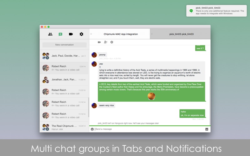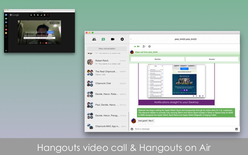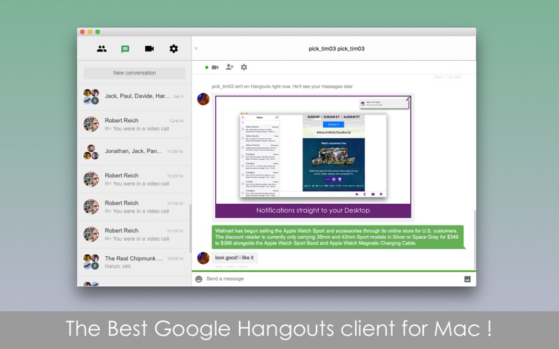 It has all the features that you would expect in a Hangouts Mac App. Definetely (and by far) the best one for Mac users! And even knowing that “there’s no free lunch”, this app is a little too much expensive...