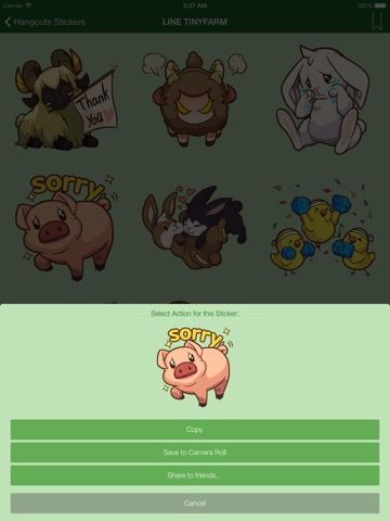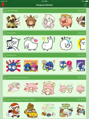 * Share stickers to Facebook/Twitter/Email/Message right from Hangouts Sticker