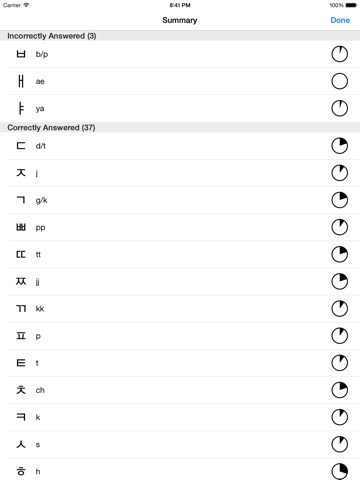 So I was looking for an app that I can study my korean hangul with, and I came across this. It doesnt have much to offer. Basically when you press the study button, it just shows the alphabet with the romanizations of what the "sounds" go with whatever symbol. I would prefer an option where I can hear the native speaker pronounce each symbol instead since its about the "sound" of the syllable rather than the romanization of it. Second, the quiz portion allows you to match up the romanized terms with the symbols and not allow you to have the option to match up the sound that goes with the symbols. If you cant annunciate in korea the correct way without romanized terminology those people are not going to understand you. Especially if you say it wrong.