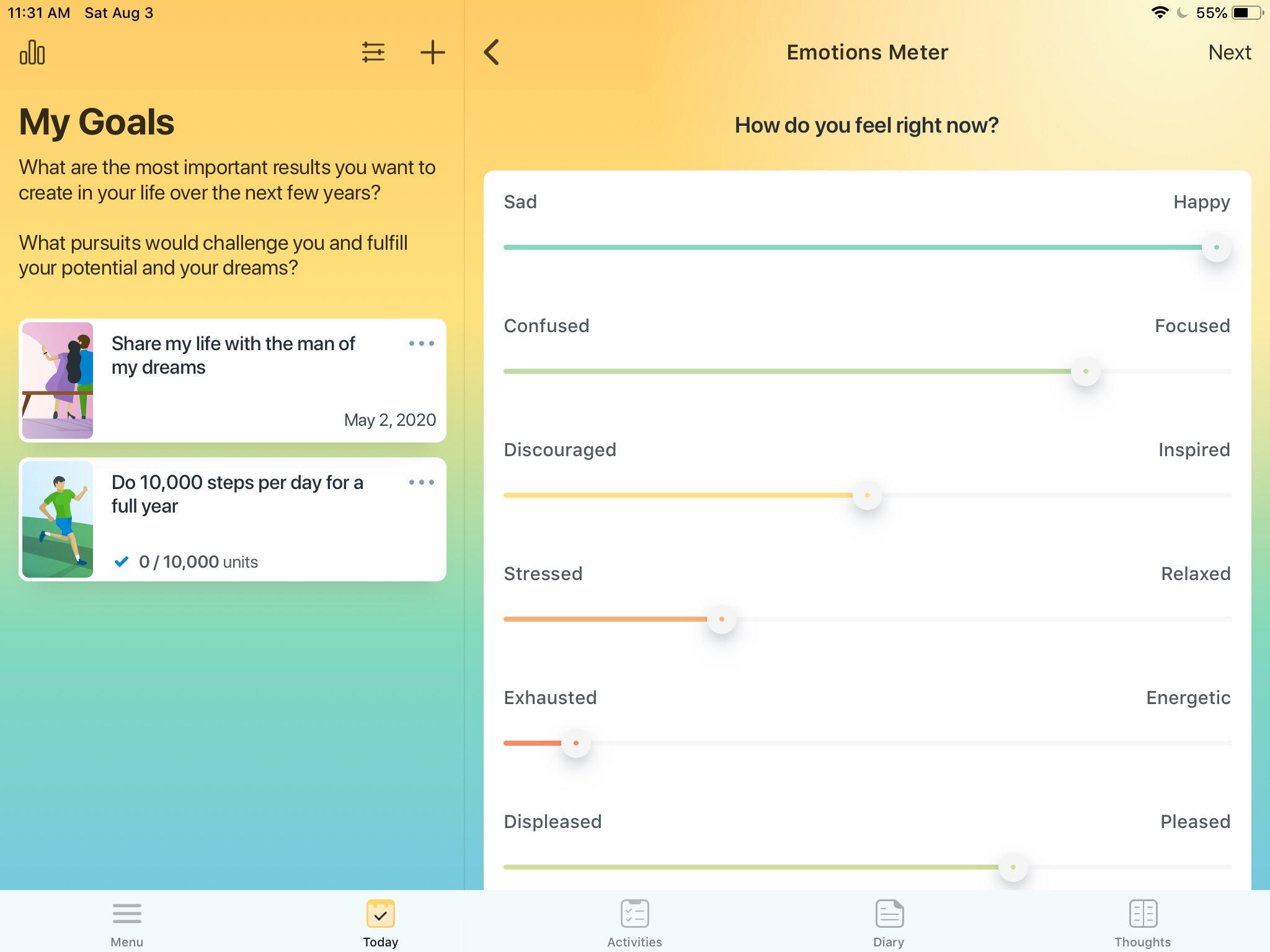 If youre looking for an app that will help you get clarity on your life goals, and motivate you like a life coach would, then check out this app! It takes a little bit to understand the full app at first, but if youre committed to personal growth, its worth the time to check out!! :)