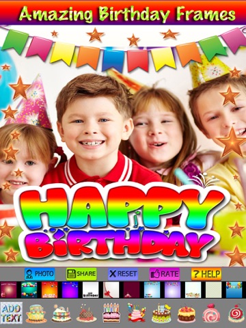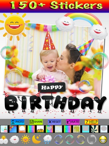This app helps you create awesome looking birthday photos with lots of frames, stickers labels and beautiful fonts.