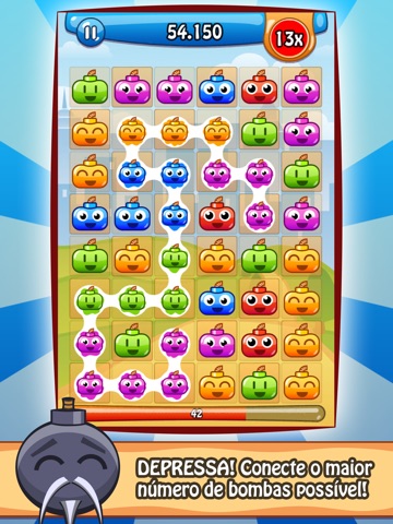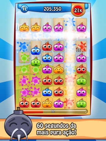 This game is easy to learn, but hard to master. Link groups of Happy Bombs with one swipe of your finger. The more groups you connect at once, the higher will your point multiplier be. Match-3 was yesterday: Connect five red bombs, three yellow bombs and a couple of blue ones to make your points and multiplier go sky-high.