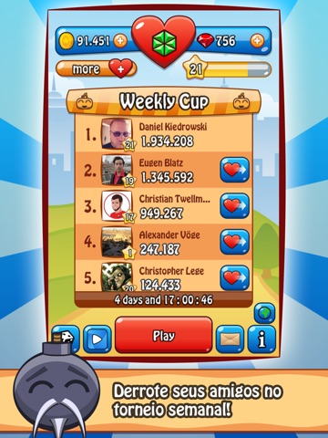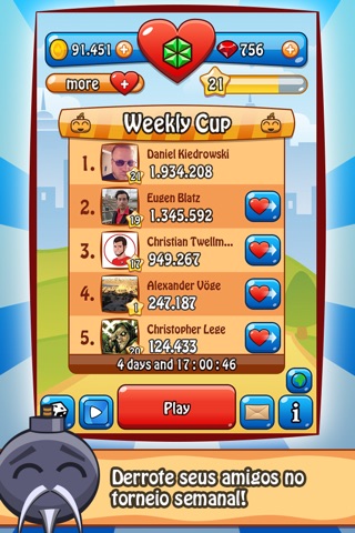 Connect Happy Bombs to Facebook and attend the weekly Happy Bombs Cup to show your friends whos the best! Win special booster bombs, coins and rubies every week.