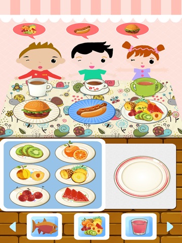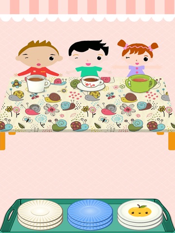 2.There are 6 kind of tablecloth ,plates and cups.It will change for every beginning of game.