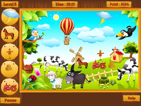 Hi Guys! You put together a great hidden object game. This is a very lively and beautiful graphics our game we used free of charge. You need to do to find the beautiful farms hidden objects. If you need to find objects in a given period of time you might have to play the part again. Our game consists of 8 beautiful parts. 15 different objects hidden in each section. These objects, flowers, horses, dogs, birds, wolves, trees can be. This game without the help of your family, you can easily play. This game is a game that is also educational. You must be careful when playing the game because you will lose points if you click the wrong objects. Looking for a nice application that children enjoy, this game is for you. You can play the game as long as you want, and start chapters. Enjoy, this game is a game that both girls and boys.